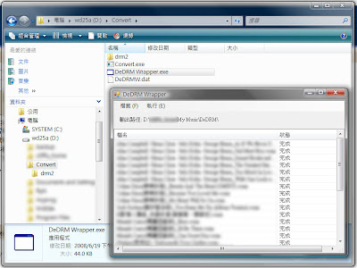 這套軟體的功能相當精簡,能在一秒內解除 wma 檔案的 DRM 限制,不過它是 console 程式,對檔名的判斷會有些小問題 (許功蓋),並且一次只能接受一個 input。寫 shell script / bat 檔案一次轉完整個目錄的檔案,是種合理的解決方式,不過用起來總讓人感到相當 geek。所以我花了一個下午用 VS.Net 2005 寫了一隻 wrapper 出來 (太久沒碰了,不然應該 1-2hr 就能搞定),能將檔案表列處理,並處理檔名問題。目前只能由 OpenFileDialog 讀檔,無法接受拖放輸入,不過其它功能都寫得差不多了 XD