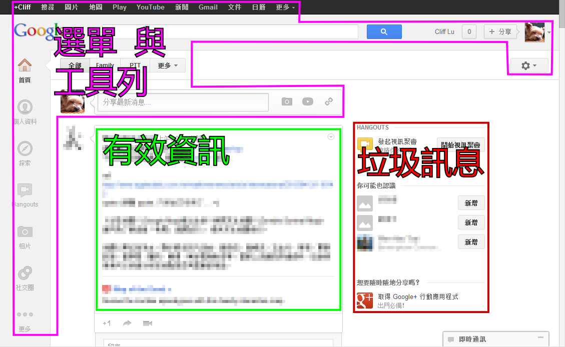 - 請找真正搞 UX ,並且大量使用 G+ 的人來設計界面與流程;這次 G+ 新版界面之差,只怕史無前例。